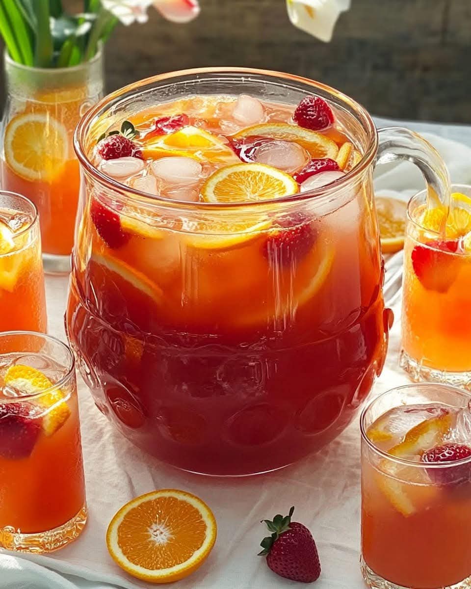 This vibrant, fruity punch is the perfect refreshment for summer gatherings, brunches, or just a relaxing day under the sun. Packed with citrus slices and juicy strawberries, itβs both beautiful and delicious. Add ice and it becomes a party favorite!