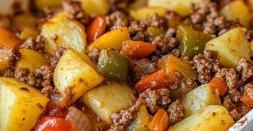 Beef & Veggie Bake ✨ Introduction This colorful and hearty oven-baked dish 🥘 combines ground beef 🥩, golden potatoes 🥔,…
