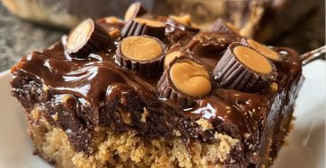Peanut Butter Cup Dump Cake 🥜 Peanut Butter Cup Dump Cake 🍫✨ A gooey, chocolatey cake swirled with peanut butter…