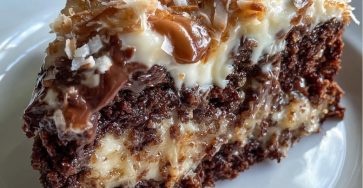 German Chocolate Dump Cake 🍫 German Chocolate Dump Cake 🥥✨ A rich, gooey cake layered with coconut, pecans, chocolate, and…