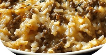 “French Onion Ground Beef and Rice Casserole”