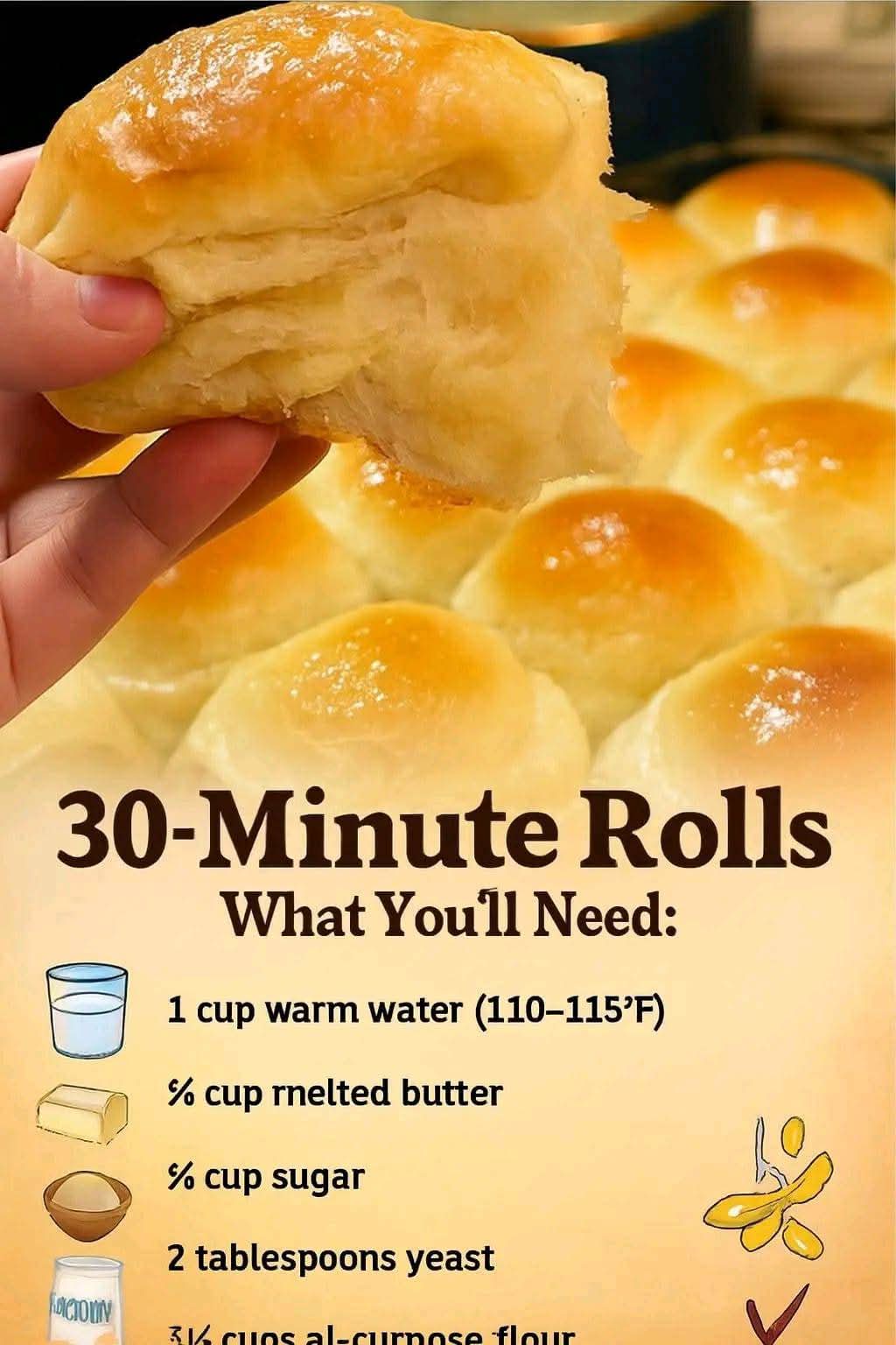 30-Minute Dinner Rolls are soft, golden, and irresistibleβa warm bite of homemade comfort in every roll! πβ±οΈπ§β¨