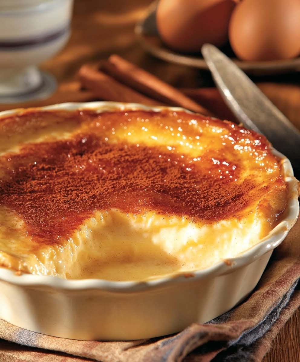 - Bake: Bake 55–60 minutes until custard is set but slightly jiggly in center.