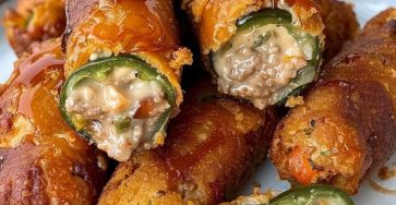 Texas Twinkies Recipe Texas Twinkies 🌶️🧀 Spicy jalapeños stuffed with cheesy meat filling, wrapped in bacon, and baked to perfection!…