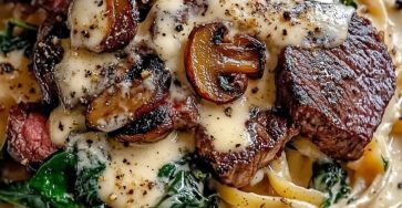 Steak Gorgonzola Alfredo with Roasted Mushrooms Steak Gorgonzola Alfredo with Roasted Mushrooms, Spinach & Caramelized Onions 🥩🍝 A luxurious pasta…