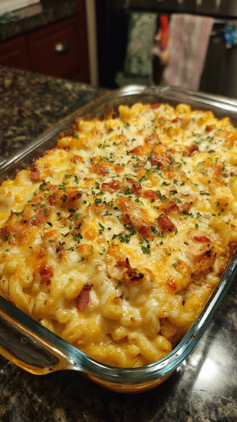 A smoky, cheesy twist on classic mac and cheese—loaded with BBQ chicken and baked golden.