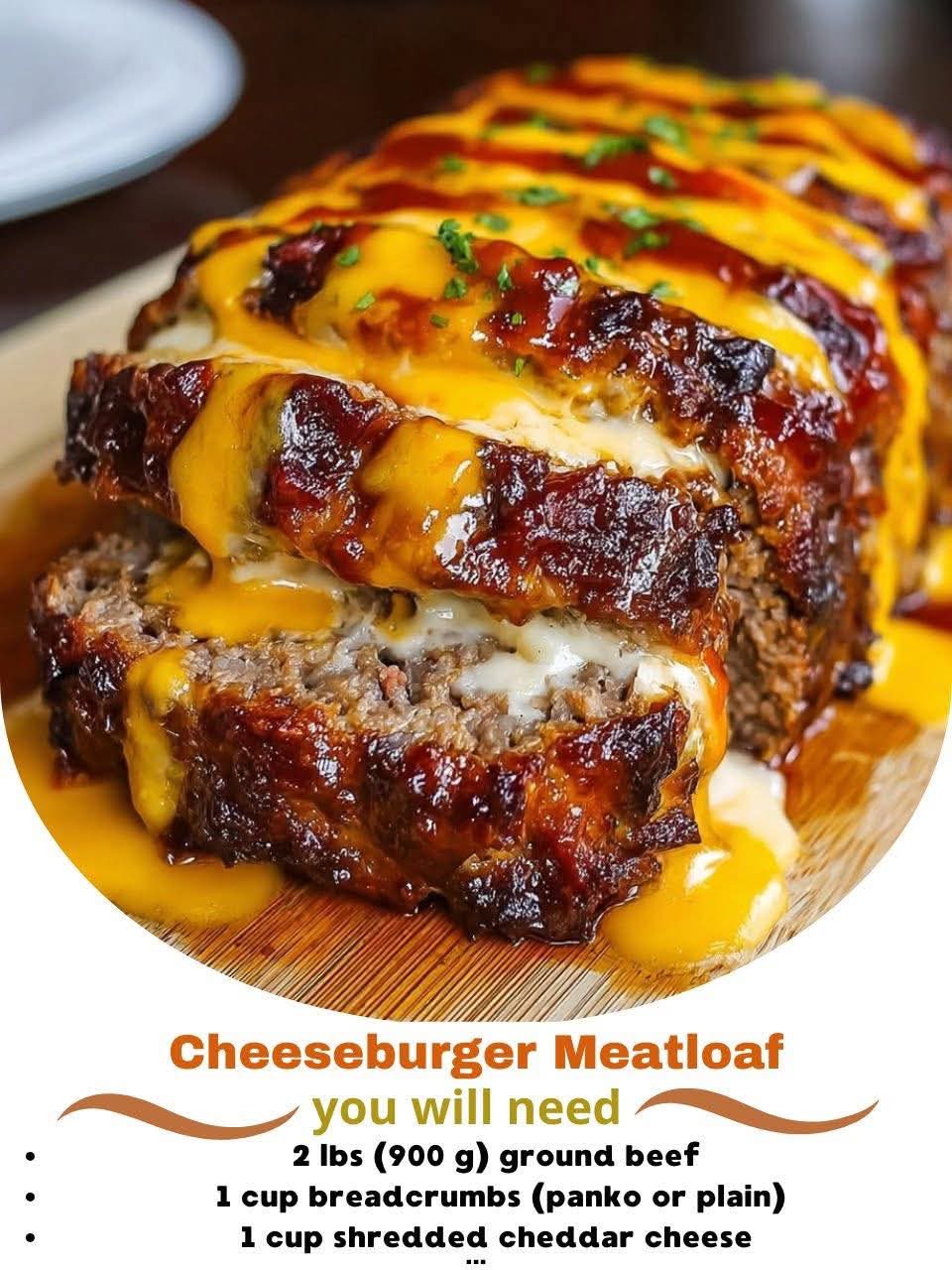 This Cheeseburger Meatloaf ๐ฅฉ๐๐ง is juicy, cheesy, and glazed with rich sauce. A bold twist on classic meatloafโperfect for ftour, family dinners, or comfort food cravings ๐ฅโจ.