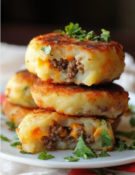 Cheesy Beef Stuffed Potato Cakes 🥔🧀🍖