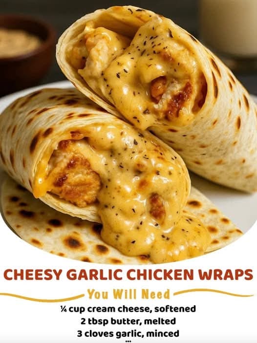 🌯 Cheesy Garlic Chicken Wraps 🧄🧀✨