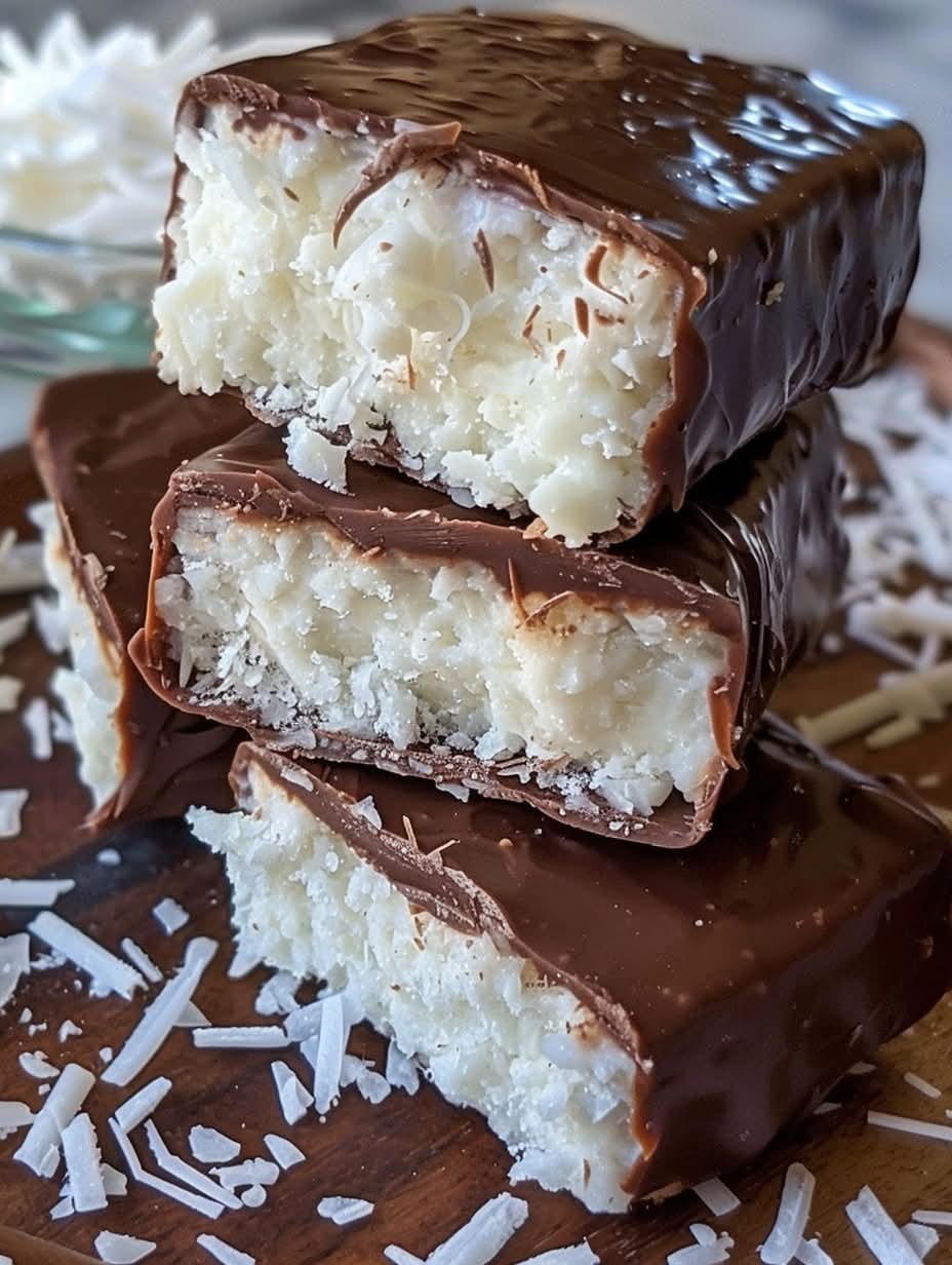 These Chocolate Coconut Bars 🍫πŸ₯₯ are creamy inside, coated in smooth chocolate, and perfect for ftour, gifting, or dessert trays πŸŒ™.