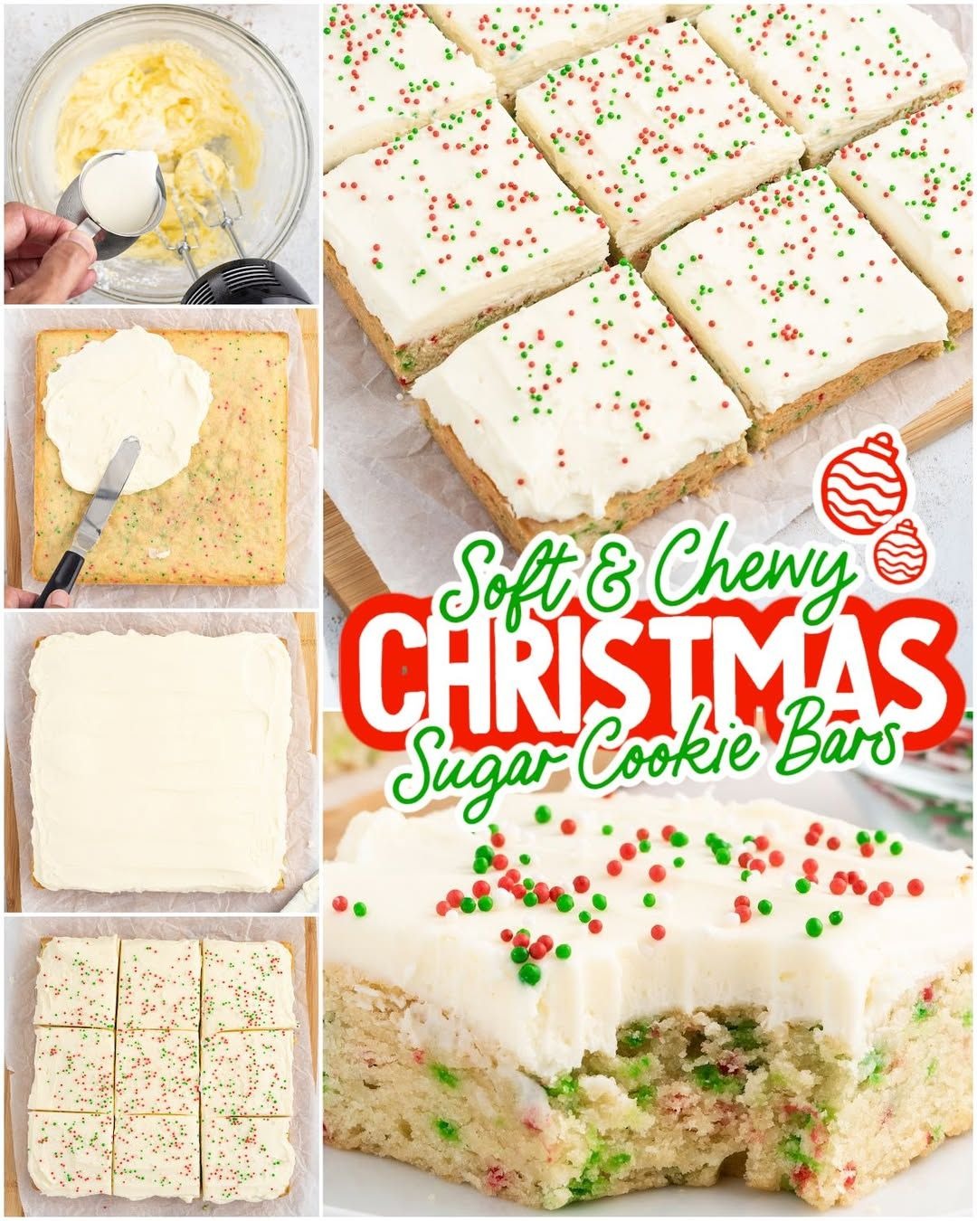 Celebrate the season with these soft, chewy sugar cookie bars—frosted with sweet buttercream and sprinkled with holiday cheer!
