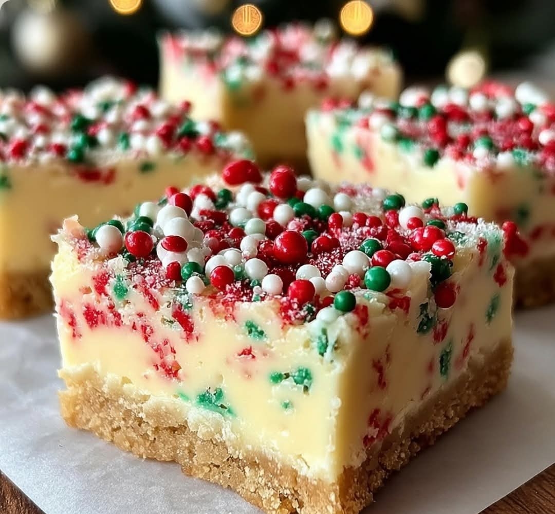 ✨ A holiday-perfect treat with buttery cookie crunch and creamy cheesecake layers—sweet magic in every bite!