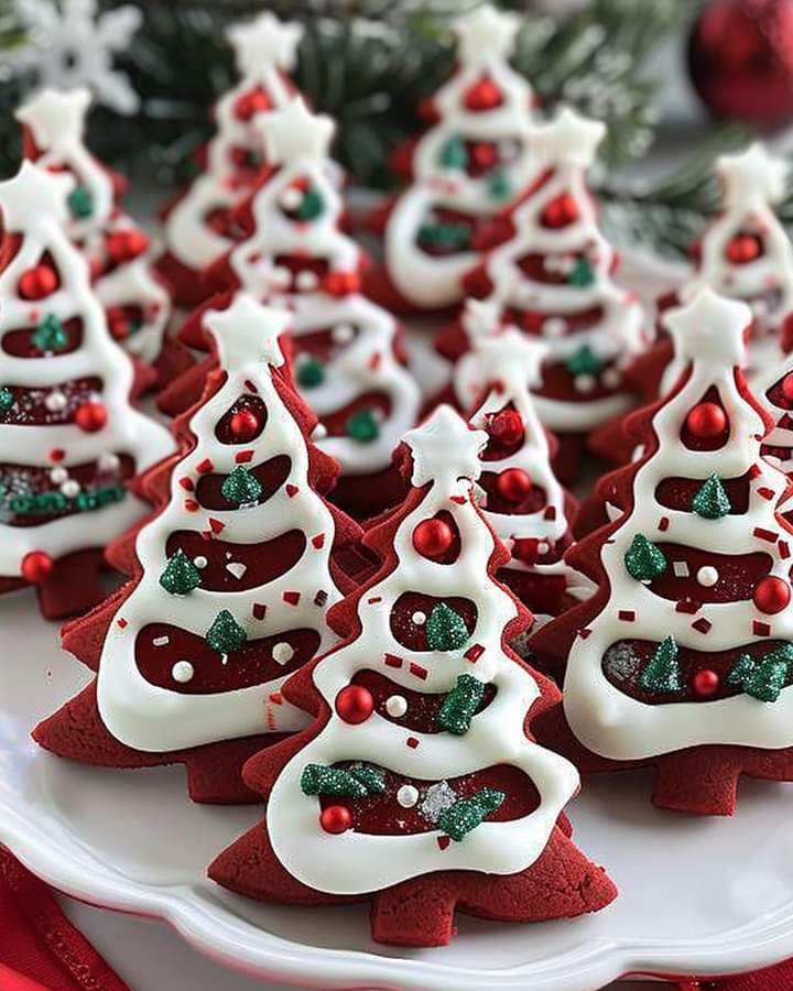 These Christmas Tree Cookies ππͺ are shaped like festive trees, decorated with icing, sprinkles, and stars. Perfect for holiday trays, gifting, or ftour celebrations π.