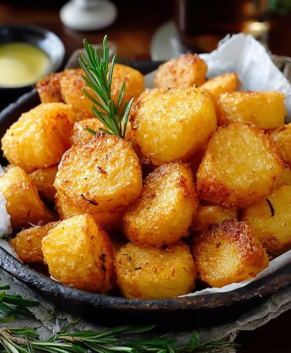 Caption: “Crunchy Roast Potatoes—golden, crispy, and totally addictive 🥔🔥✨”