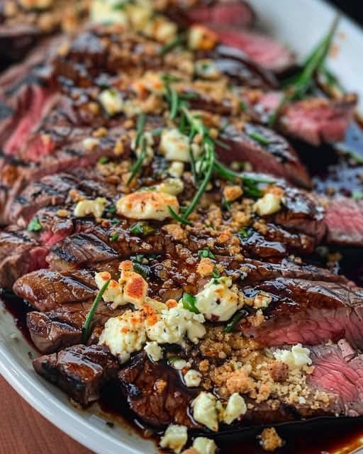 Balsamic Marinated Flank Steak with Blue Cheese Crust🍽️🔥