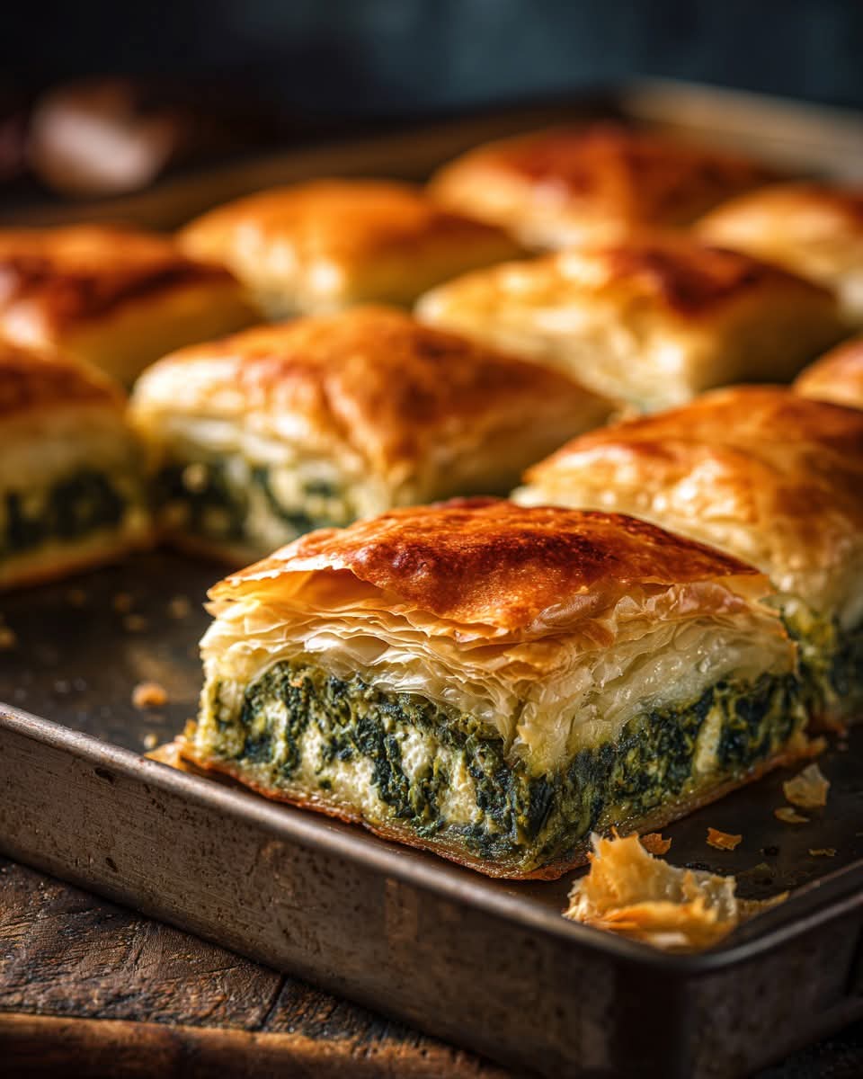 • Rotating closers: “Save for your next cozy bake.” • “Tag a friend who loves savory pies.” • “Layers of flaky pastry and creamy feta bliss.”