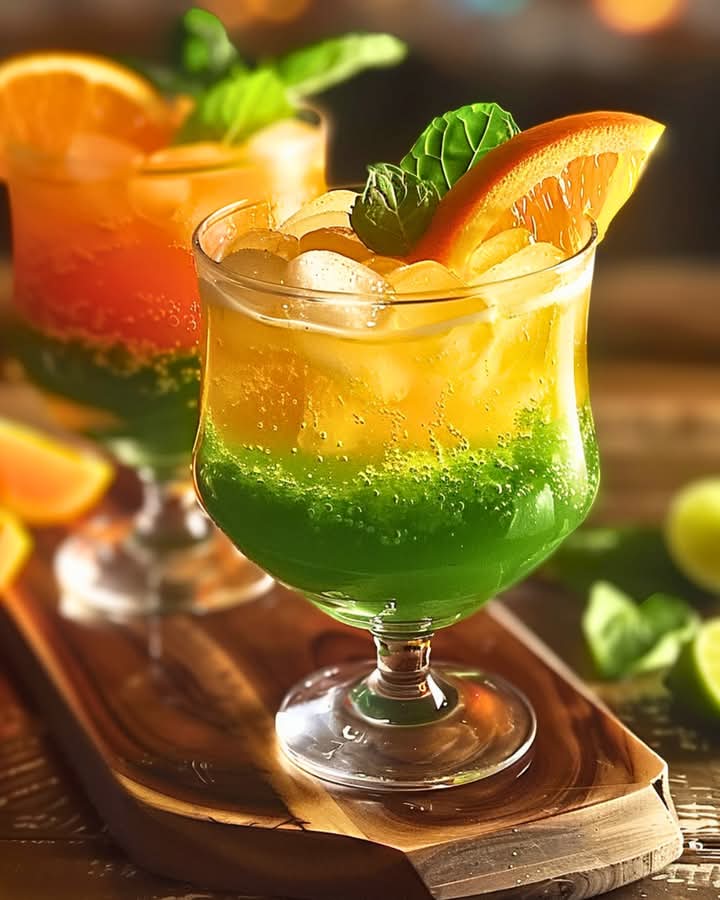 This colorful mocktail layers tropical citrus flavors with a cool slushy texture. The green and orange split creates a stunning visual and a refreshing tasteβperfect for parties, summer gatherings, or anytime you want a fun non-alcoholic drink.