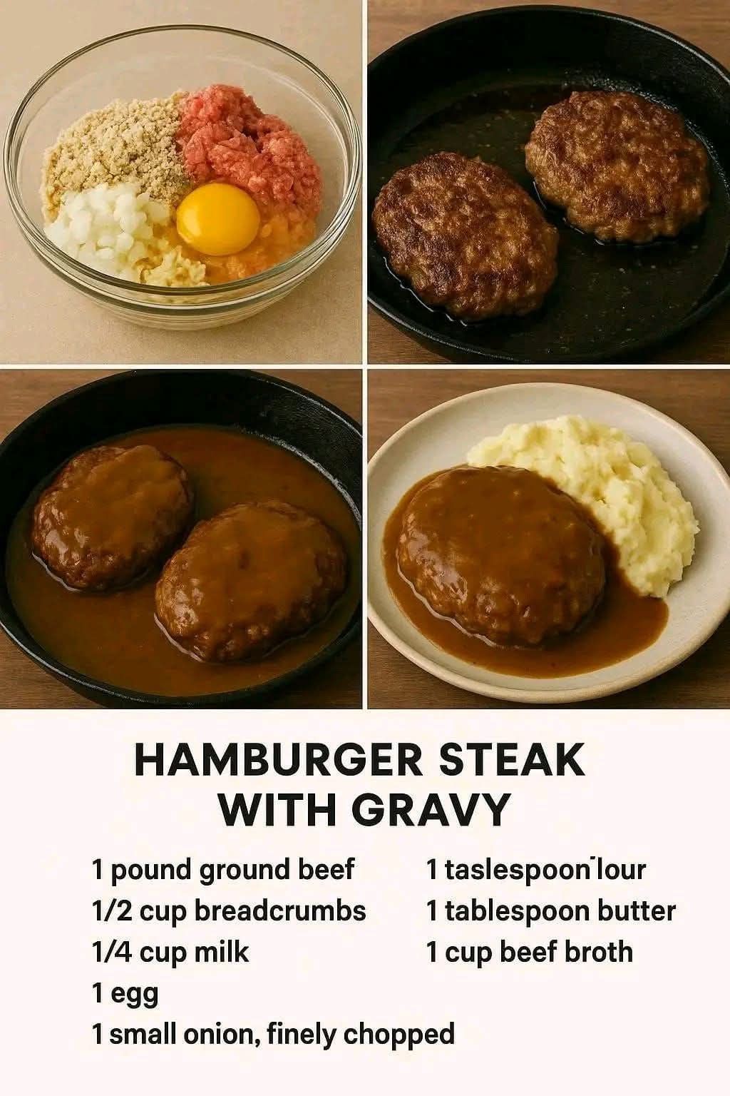 🍽️ Hamburger Steak with Gravy 🧅✨