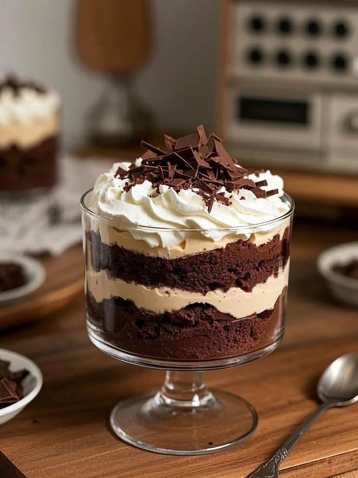 🍫 Heavenly Chocolate Cheesecake Trifle 🍰Servings: 8 | Prep Time: 20 minutes | Chill Time: 1 hour | Total Time: 1 hour 20 minutesDifficulty: Easy | Calories: ~450 per servingThis luscious, no-bake dessert is a chocolate lover’s dream—layer upon layer of moist chocolate cake, creamy cheesecake filling, rich pudding, and decadent ganache. Topped with truffles and chocolate shavings, it’s the ultimate show-stopper for any celebration.✨ IngredientsCake & Layers1 chocolate cake (baked and crumbled; use your favorite recipe or store-bought)2 cups prepared chocolate pudding1 cup chocolate sauce or ganacheCheesecake Layer1 (8 oz / 225 g) package cream cheese, softened1 cup (120 g) powdered sugar1 tsp vanilla extract1 container (8 oz / 225 g) whipped topping (like Cool Whip), thawedToppingsChocolate truffles or chocolate balls (for garnish)Chocolate shavings (for garnish)👩‍🍳 Instructions1. Prepare the Cheesecake LayerIn a mixing bowl, beat the softened cream cheese with powdered sugar and vanilla extract until smooth and creamy.Gently fold in half of the whipped topping to create a fluffy cheesecake mousse.2. Assemble the TrifleIn a large trifle dish or clear glass bowl, layer the dessert as follows:Start with crumbled chocolate cake at the bottom.Add a generous layer of the cheesecake mixture.Spoon over a layer of chocolate pudding.Drizzle with chocolate sauce or ganache.3. Repeat the LayersRepeat the cake → cheesecake → pudding → ganache layers until your dish is filled.Finish with a final layer of the remaining whipped topping on top.4. Add GarnishesDecorate with chocolate truffles or chocolate balls on top.Sprinkle generously with chocolate shavings for a rich, elegant finish.5. Chill and ServeCover and refrigerate the trifle for at least 1 hour before serving.Serve chilled for maximum indulgence!💡 Tips for SuccessUse a homemade or boxed chocolate cake for convenience.Add a sprinkle of sea salt or crushed cookies between layers for extra texture and contrast.Make individual servings in small jars or glasses for a stunning personal dessert.❤️ Why You’ll Love This TrifleNo baking required once the cake is doneIncredibly rich, creamy, and chocolateyPerfect for holidays, potlucks, and chocolate lovers everywhere