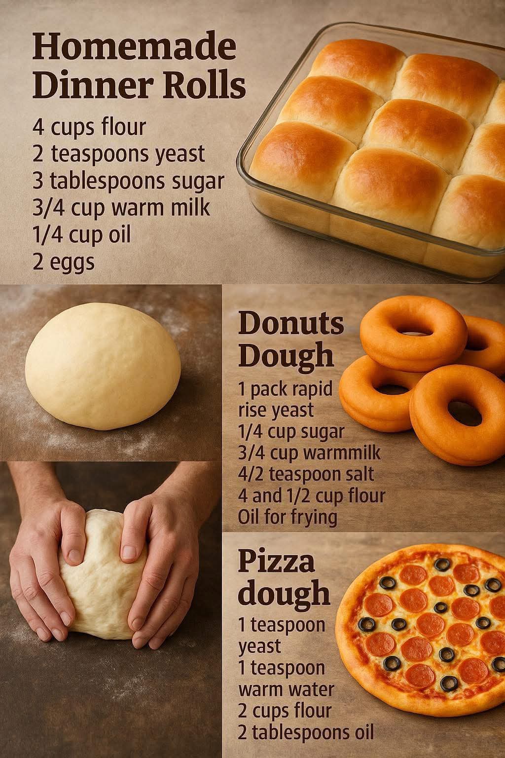 These homemade dinner rolls are soft, buttery, and irresistibly fluffy — the perfect addition to any meal. Whether you’re serving them for a holiday feast or just want something warm and comforting with your dinner, this foolproof recipe delivers delicious results every time.—🧂 Ingredients:4 cups all-purpose flour (plus more for dusting)2 teaspoons instant dry yeast3 tablespoons sugar1 1/4 cups warm milk (around 100–110°F / 38–43°C)1/4 cup vegetable oil (or melted butter)2 large eggs1/2 teaspoon saltFor Brushing:1 egg white + 2 tablespoons water (for egg wash before baking)2 tablespoons melted butter (to brush after baking)—🥣 Instructions:1. Activate the yeast:In a mixing bowl, combine warm milk, sugar, and yeast. Stir and let it sit for 5–10 minutes until it becomes foamy.2. Make the dough:Add oil, eggs, and salt. Gradually add flour, one cup at a time, mixing until a soft dough forms. Knead the dough for 5–7 minutes by hand or with a mixer until smooth and elastic.3. First rise:Cover the dough with plastic wrap or a clean kitchen towel. Let it rise in a warm spot for 1 hour or until it doubles in size.4. Shape the rolls:Punch down the dough and divide it into 16–24 equal pieces, depending on your preferred size. Shape each piece into a smooth ball and arrange in a greased or parchment-lined baking dish.5. Second rise:Cover and let the shaped rolls rise for another 30–40 minutes until puffy.6. Bake:Preheat the oven to 350°F (175°C). Brush the rolls with egg wash to give them a golden, shiny finish. Bake for 20–25 minutes or until golden brown on top.7. Final touch:Remove from the oven and immediately brush with melted butter. Let cool slightly before serving.—🍞 Tips & Notes:You can replace milk with almond or oat milk for a dairy-free version.Add herbs (like rosemary or garlic powder) to the dough for a savory twist.