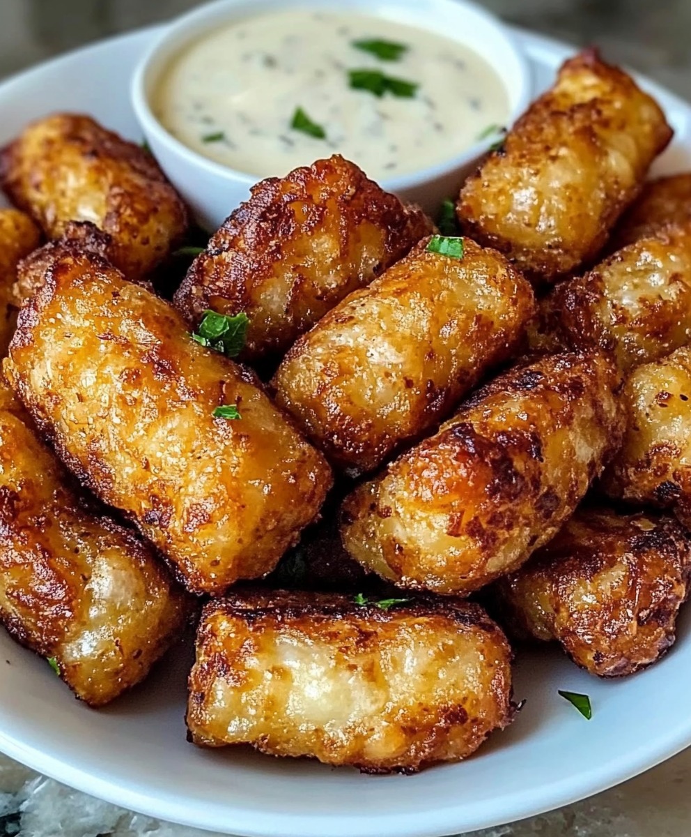 - Bake: Preheat oven to 400°F (200°C). Spray or brush tots with oil. Bake 20–25 minutes, flipping halfway, until golden and crispy.