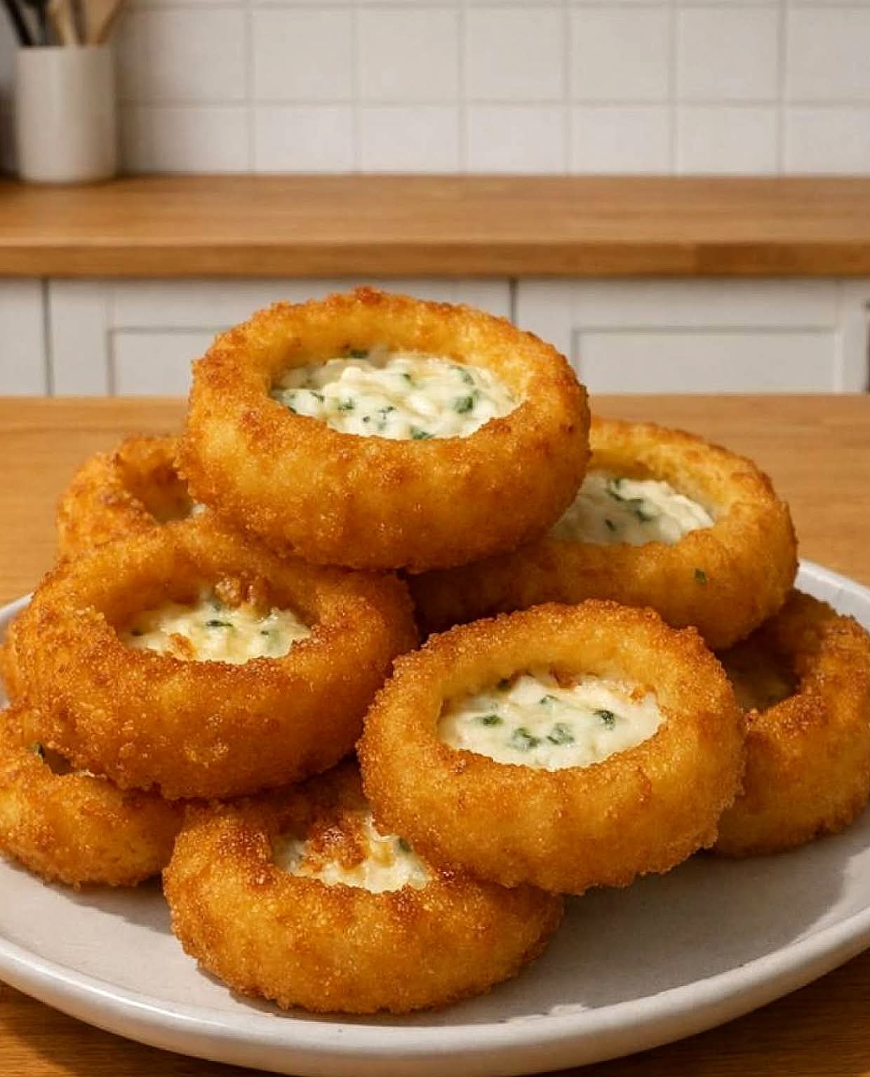 Crispy on the outside, creamy and a little spicy on the inside—these stuffed onion rings combine everything you love about jalapeño poppers in one bite. Perfect for game night or cozy snacking!