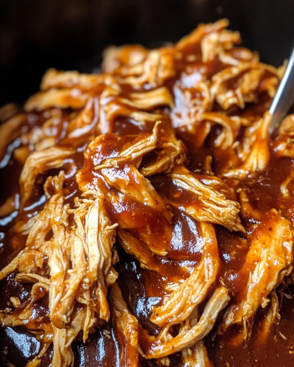 Slow-cooked chicken shredded and tossed in a rich, smoky-sweet honey BBQ glaze—sticky, tender, and full of flavor.