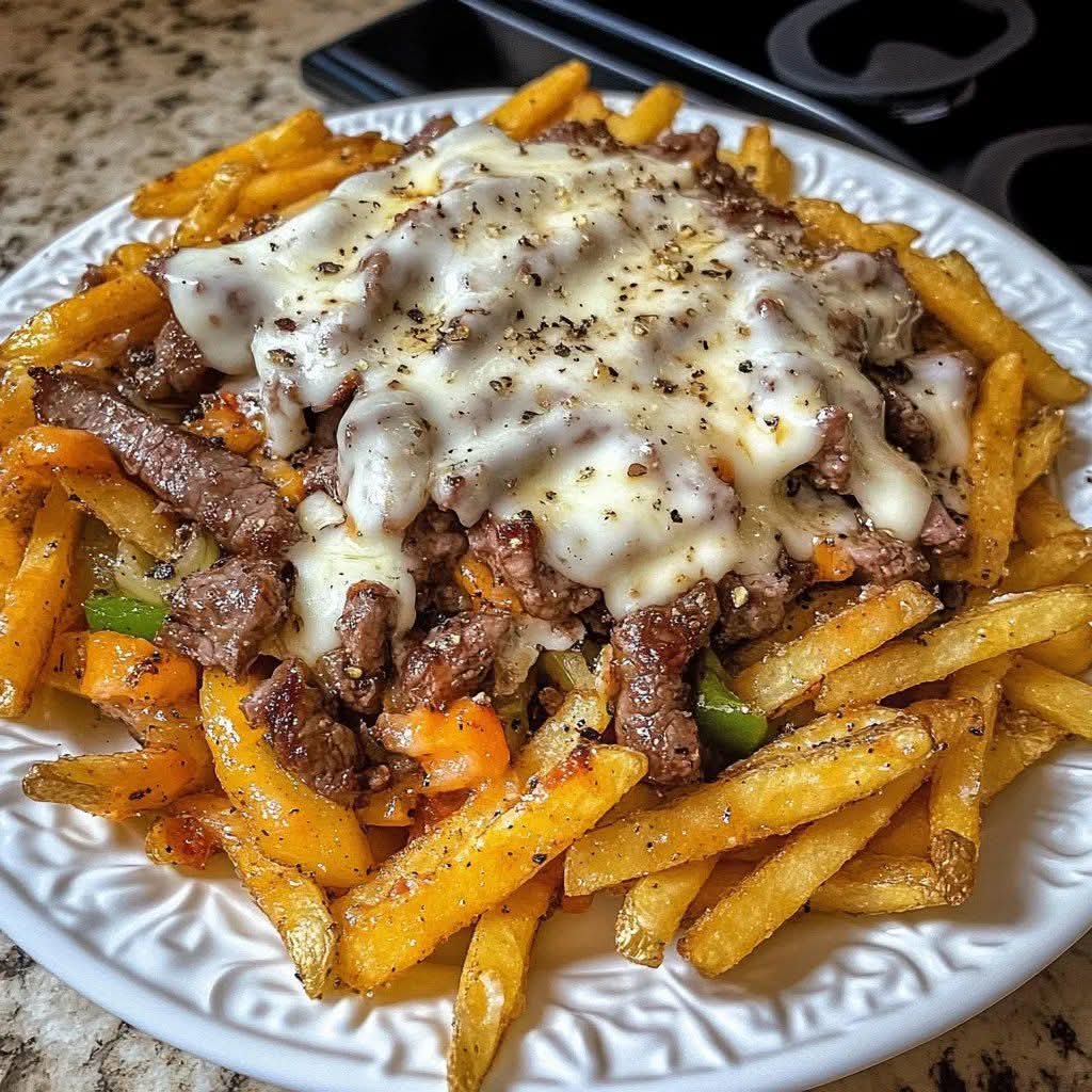 Golden fries topped with seasoned beef strips, sautéed bell peppers, and gooey melted cheese—this dish is a bold fusion of comfort and flavor, perfect for sharing or indulging solo!