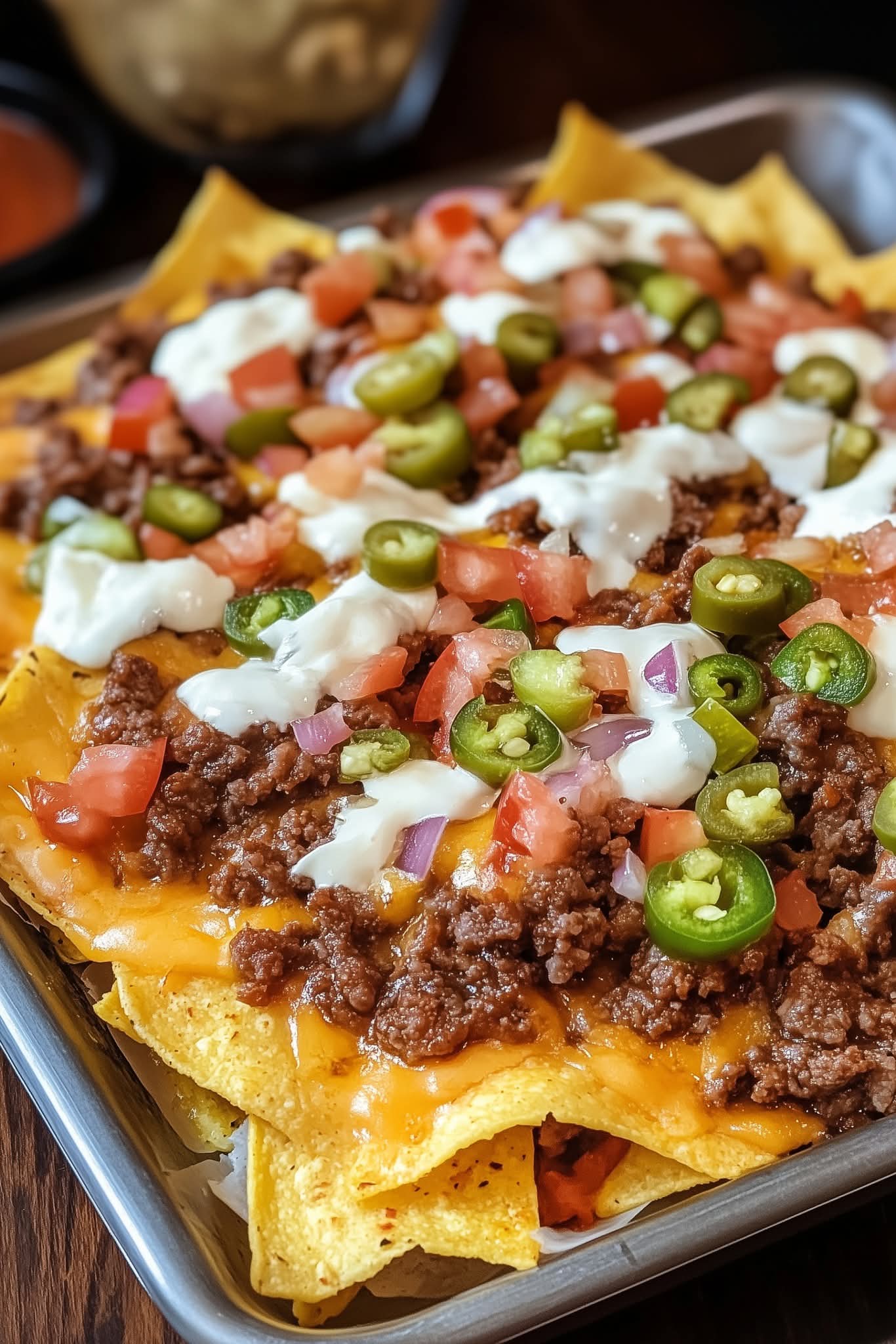 Loaded Beef Nachos are crispy, savory, and satisfyingโa tray of joy in every bite ๐ฎ๐ ๐ง๐ฅ.