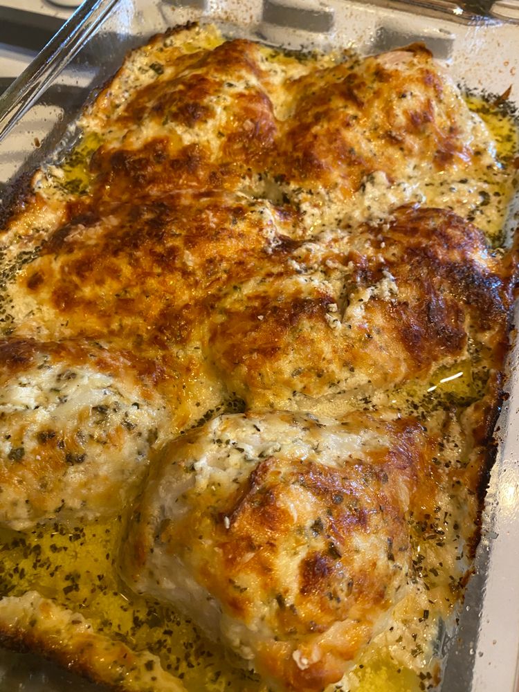Juicy, tender chicken baked with a creamy parmesan topping—comfort food at its finest!