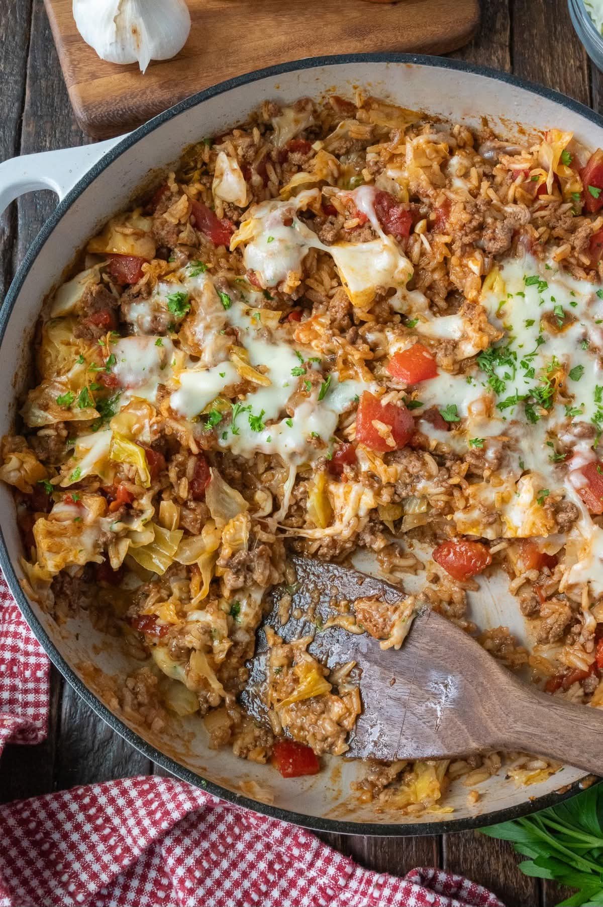 One-Pan Cheesy Cabbage Rice Bake is hearty, cheesy, and comfortingβa skillet full of flavor π₯¬ππ§.