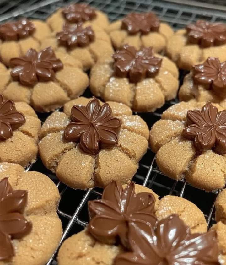 ✨ A chewy peanut butter base with a velvety chocolate crown—these blossoms are holiday showstoppers!