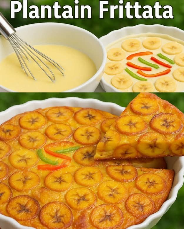 5. Arrange the sliced plantains and bell peppers on top in a decorative pattern.