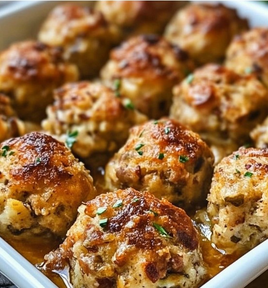 Golden, cheesy stuffing balls baked to perfection—crispy outside, tender inside, and full of flavor.
