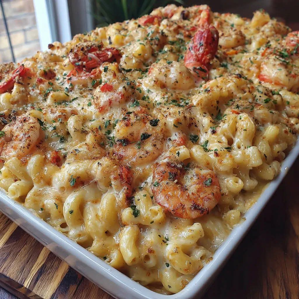 This Shrimp Mac & Cheese Bake π§π€ is creamy, cheesy, and topped with juicy shrimp and herbs. A gourmet twist on comfort foodβperfect for ftour, cozy nights, or special dinners ππ₯.