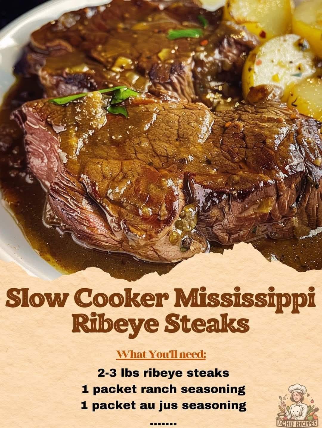 Slow Cooker Mississippi Ribeye Steaks 🥩🍲