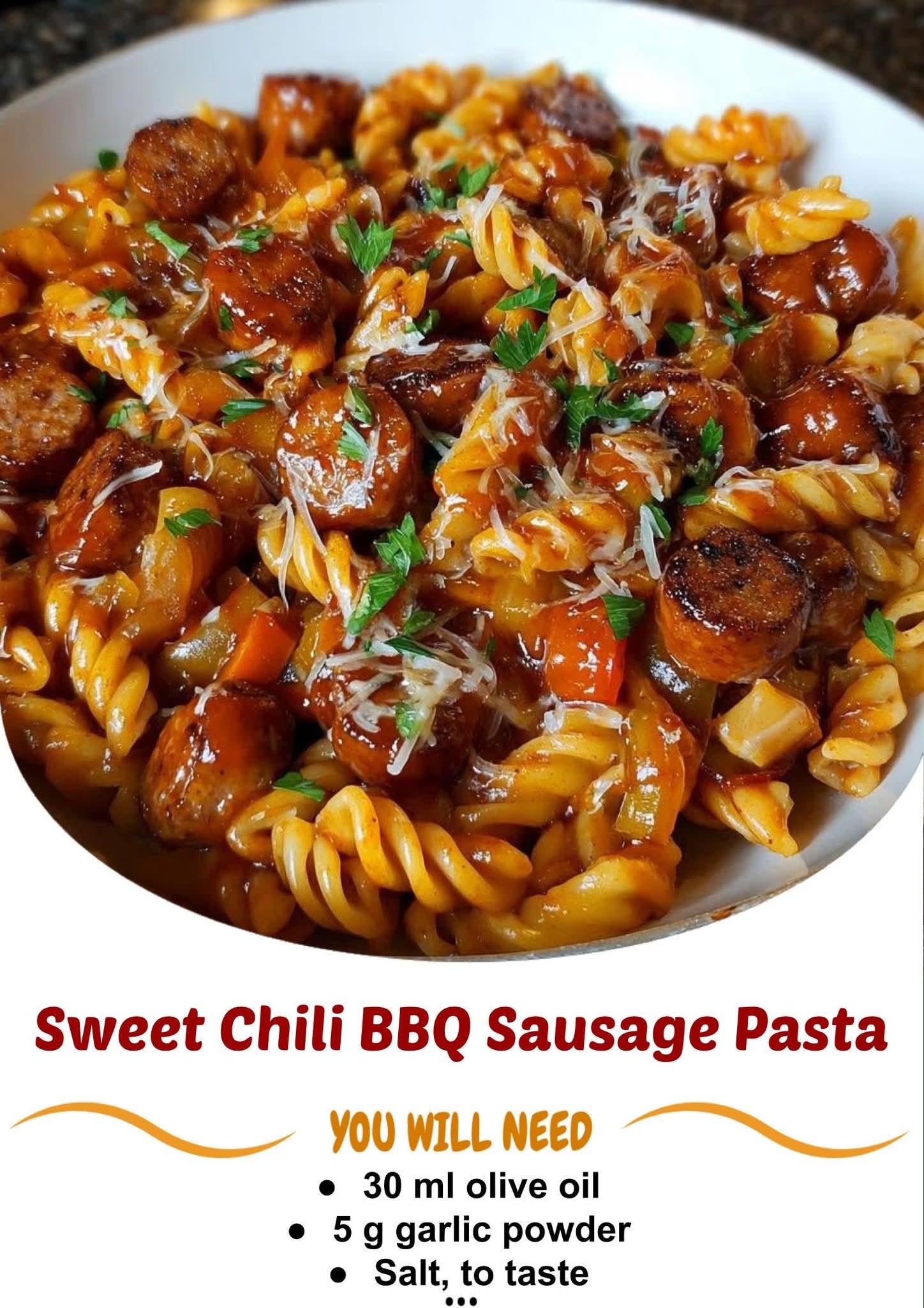 Sweet Chili BBQ Sausage Pasta 🍝🌶️🥓✨