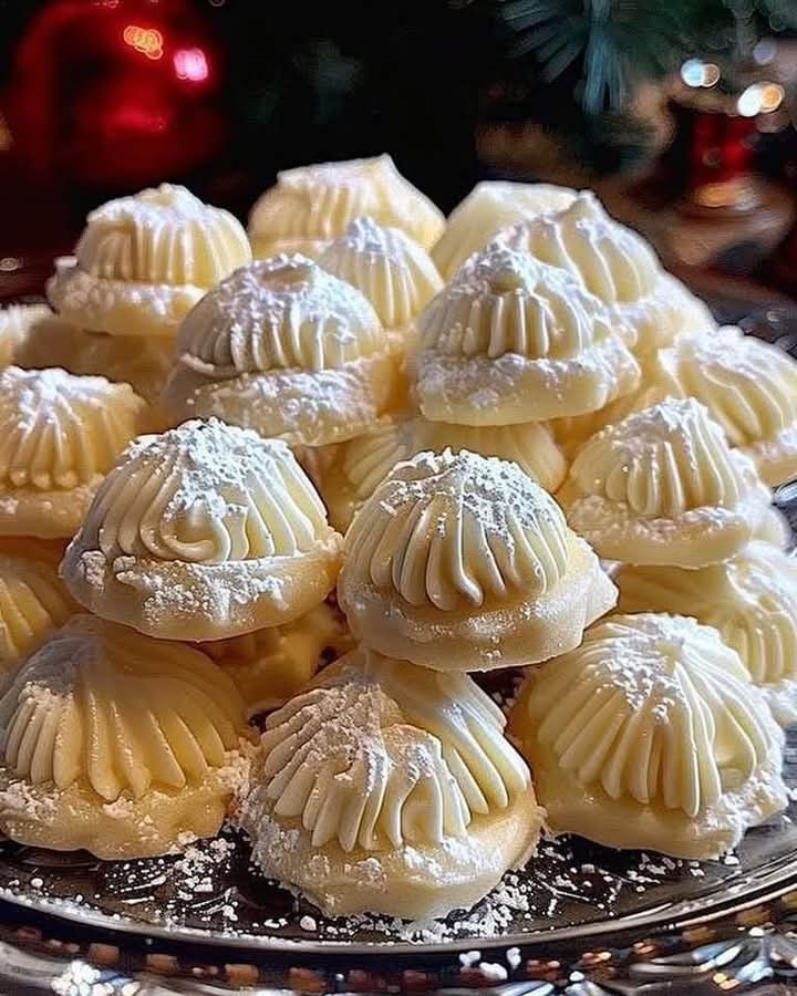 - ❄️ Cool slightly, then roll warm cookies in powdered sugar. Once fully cooled, roll again for a snowy finish.