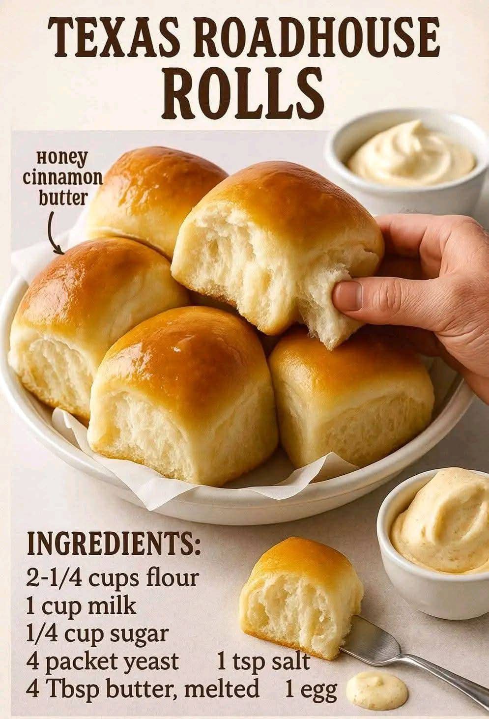 These Texas Roadhouse Rolls 🍞 are soft, fluffy, and perfect with sweet Honey Cinnamon Butter 🍯🧈. A bakery-style treat ideal for ftour, brunch, or cozy evenings ✨.