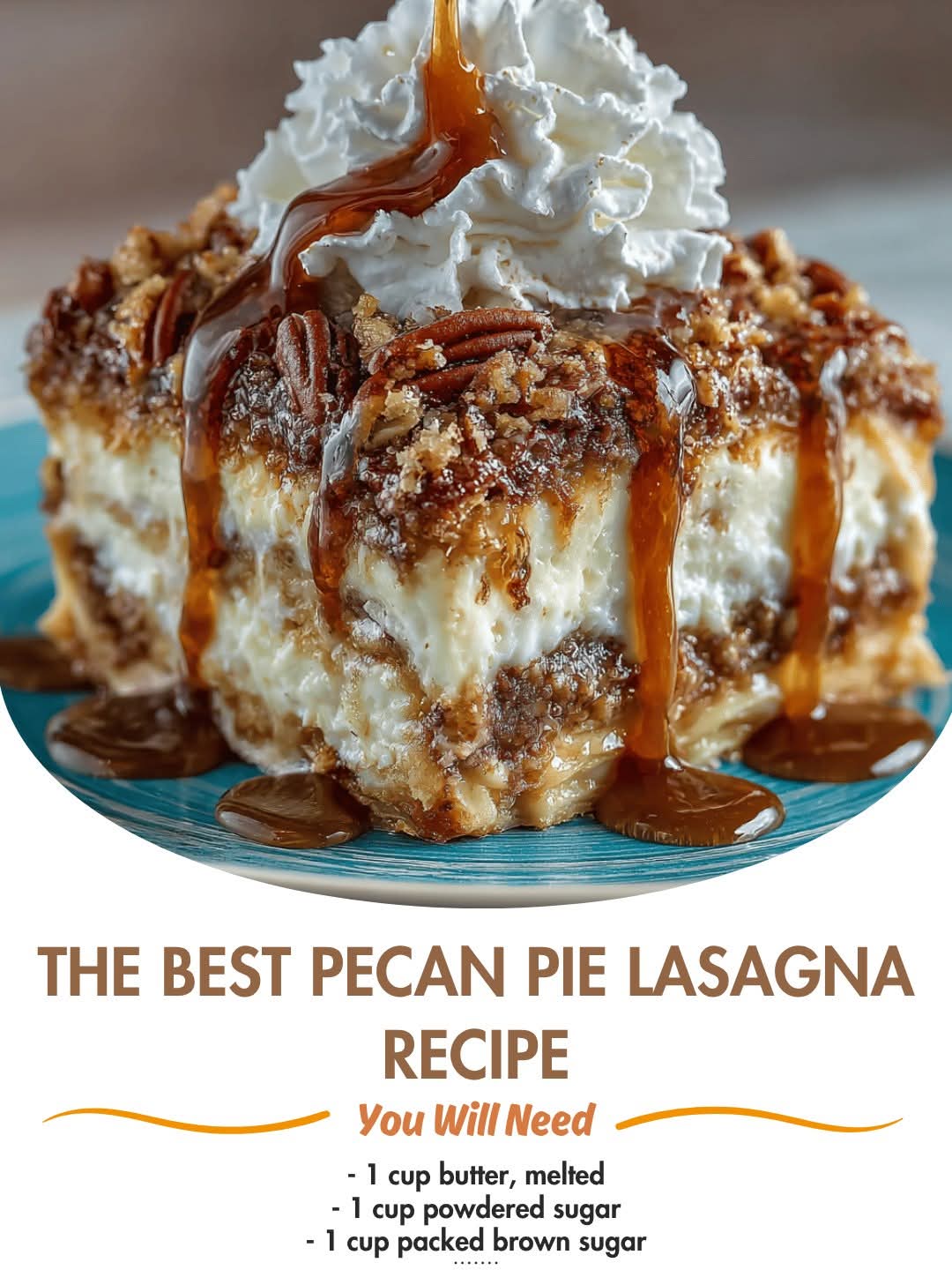 Pecan Pie Lasagna is a rich, creamy, and crunchy no-bake dessert that captures the flavor of classic pecan pie in layered form. This delicious dish features layers of buttery crust, sweetened cream cheese, whipped topping, caramel, and toasted pecans. Itβs perfect for holidays or any occasion when you want a stunning dessert with minimal baking.
