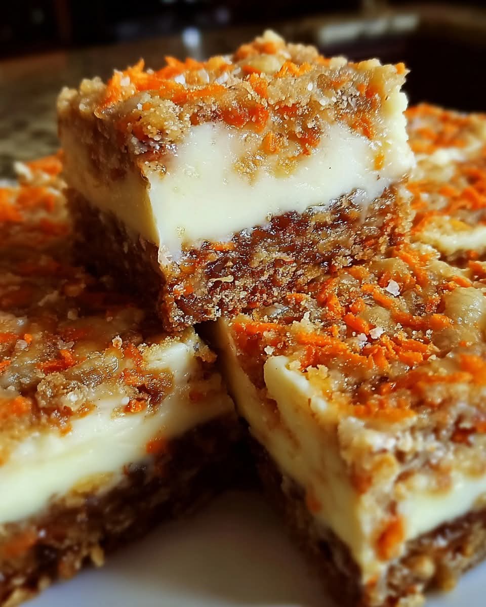 Caption: “Spiced Carrot Cake Bars with Cream Cheese Swirl—moist, cozy, and irresistible 🥕🍰✨”